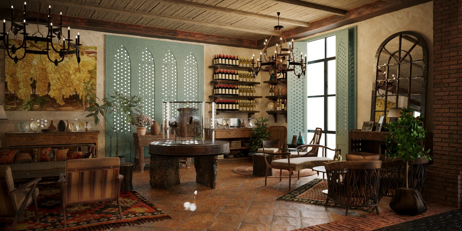 Building materials and styles of the interior were selected according to the rich cultural and historical heritage of the Kakheti region.